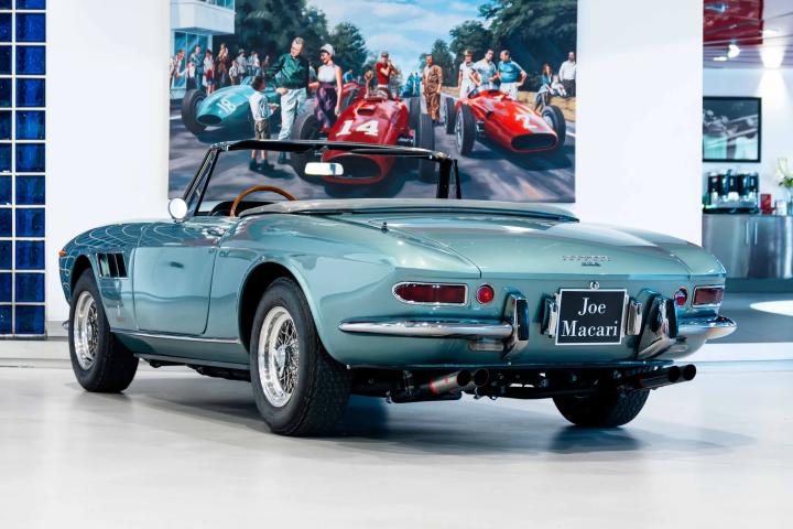 The Ferrari 275 GTS was completely different in appearance and proportions to its closed-roof sibling, while the cabriolet car was constructed of steel with aluminium bonnet, boot lit, and doors. Uncovered headlamps, triple-louvered wings, a tapered rear end, and standard Borrani wire wheels were the spider’s key visual identifiers, and those features were eventually carried over to the 330 and 365 GTS variants that followed. Just 200 examples of the 275 GTS were built over an 18-month production period, making the model far rarer than the 275 GTB, of which over twice the amount were made. Prized by Ferrari enthusiasts today as the luxurious grand touring expression of the celebrated 3.3-litre Colombo platform, the 275 GTS has evolved into one of the era’s most collectable open-top Ferraris.