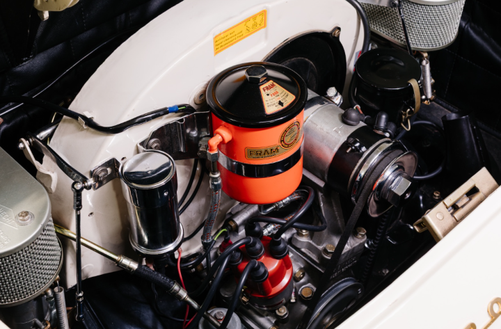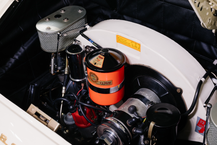 The “Super 90” designation marked the introduction of Porsche’s most advanced pushrod engine of the period. Equipped with revised intake manifolds, larger Solex 40 PII-4 carburetors, Carrera-type air filters, 9.0:1 pistons, and a strengthened crankshaft with 55 mm main bearings, it offered a notable increase in both power and reliability. Further enhanced by the adoption of the robust Haussermann clutch, the Super 90 delivered a spirited performance that set it apart from other 356 variants.