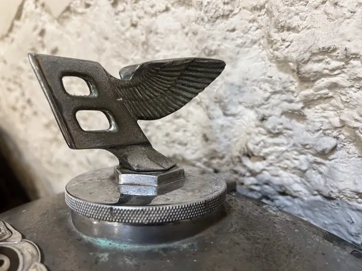 Radiator With Calastat And Mascot For Derby Bently 3.5 Litre Tested for leaks and holds water well with a good flow, one small/shallow dent that can be clearly seen on the photographs and some age related patina that should respond well to cleaning/restoration nice original flying B mascot with working steam valve, collection in person preferable but quote given is for postage by pallet to uk mainland, please ask for a quote if you require delivery elsewhere, please study the photographs carefully as they form a part of the description, feel free to get in touch for more information, measurements or photographs and check out our other listings for more great parts, tools and automobillia!