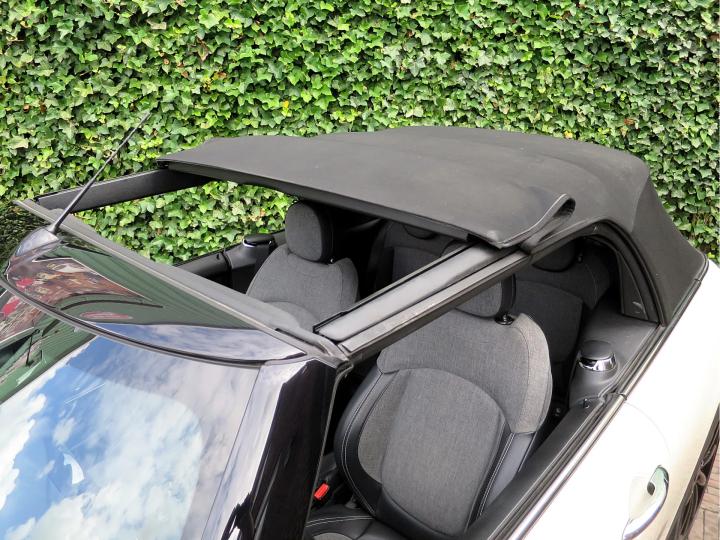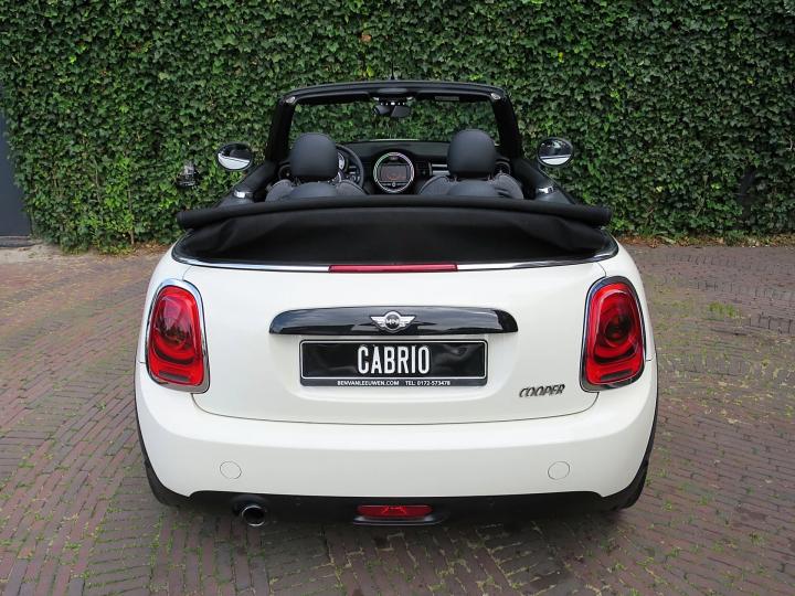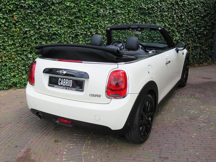 Zeer nette, goed onderhouden Mini Cabrio Cooper F57 in de kleur Pepper White met een zwarte stoffen kap, zwarte 17" Cosmos Spoke lichtmetalen velgen en een half leder Carbon Black sportinterieur met een Carbon Black colourline en Piano Black interieurdelen! Deze Cooper Cabrio heeft slechts 1 eigenaar gehad die er slechts 59.399km mee heeft gereden. De Cabrio is o.a. uitgerust met een origineel windscherm, Park Distance Control (PDC) achter, LED kop- en mistlampen, climate control, lederen multifunctioneel sportstuur met cruise control, stoelverwarming, lichtpakket en opbergpakket.